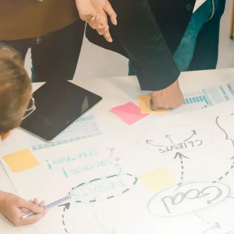 Maßnahmenplan erstellen: Am Ende entsteht ein individueller Maßnahmenplan: Welche Aktivitäten müssen umgesetzt werden? Wann und mit welchen Partnern oder Kolleg:innen? Die Ergebnisse und nächsten Schritte werden in einer Pitch-Präsentation gebündelt, die sowohl intern als auch extern eingesetzt werden kann.
